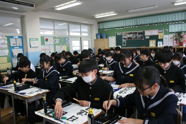 1月8日(水) 1年生書き初め 公開日 2025/01/09 更新日 2025/01/08 1学年 書き初め大会がありました。1年生は「日進月歩」と書いています。どのクラスも一生懸命、取り組んでいて、落ち着いた雰囲気です。上手な字もたくさんあります。 1年生 2年生 3年生 学校行事 授業参観 PTA