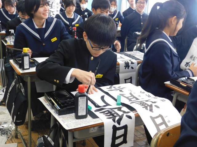 1月8日(水) 1年生書き初め 公開日 2025/01/09 更新日 2025/01/08 1学年 書き初め大会がありました。1年生は「日進月歩」と書いています。どのクラスも一生懸命、取り組んでいて、落ち着いた雰囲気です。上手な字もたくさんあります。 1年生 2年生 3年生 学校行事 授業参観 PTA