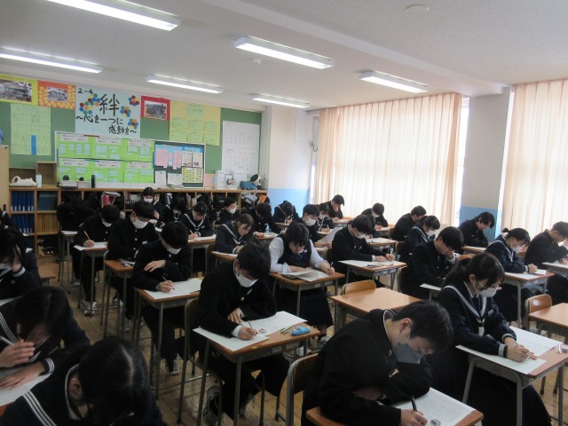 2月19日(水)学年末評価1日目 公開日 2025/02/20 更新日 2025/02/19 その他 今日から3日間、一年間の集大成となる学年末評価です。どの学年も真剣に取り組む姿が見られました。特に、3年生は義務教育最後の定期評価なので、気合いが入っている様子でした。 +5