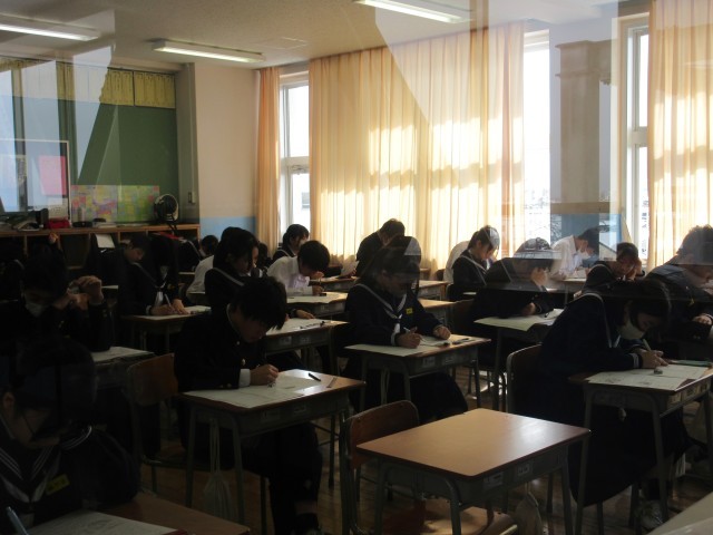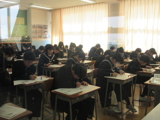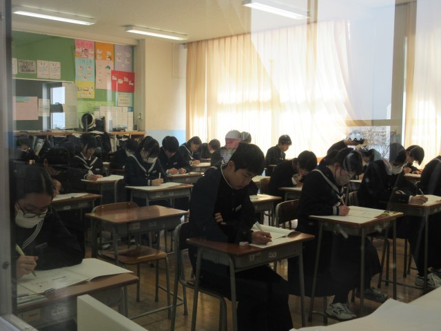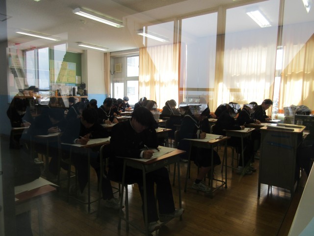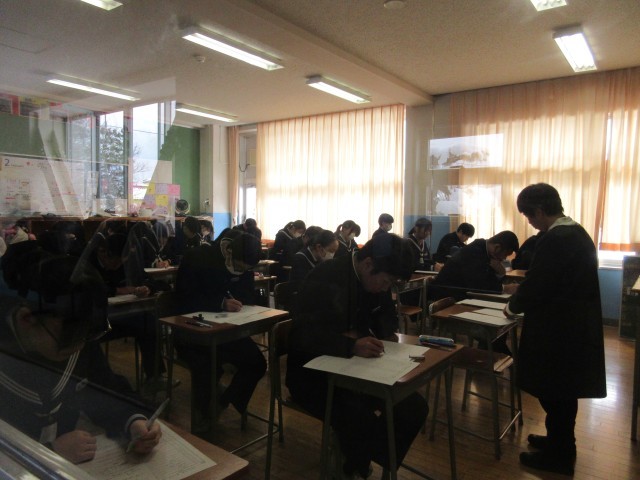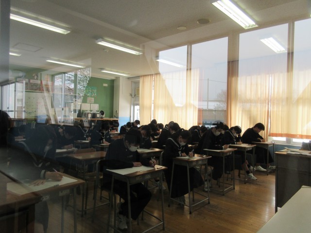 2月20日(木)学年末評価2日目 公開日 2025/02/25 更新日 2025/02/20 その他 学年末評価2日目、3年生は5教科のみなので最終日です。今日も、真剣な表情で問題に取り組む姿が見られました。1・2年生のみなさん、あと一日、頑張りましょう! +3