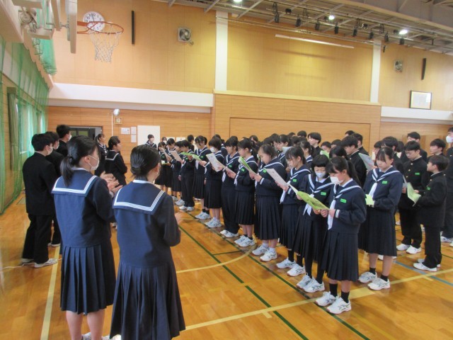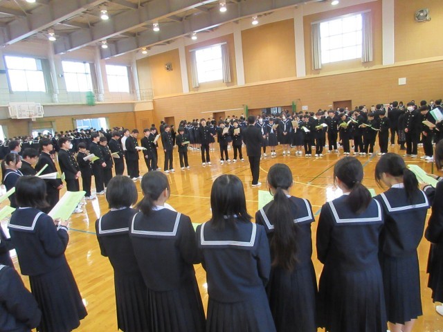 最後に、1,3年生全員で歌った校歌はこれからの新庄中学校が楽しみに感じる素晴らしい歌でした。