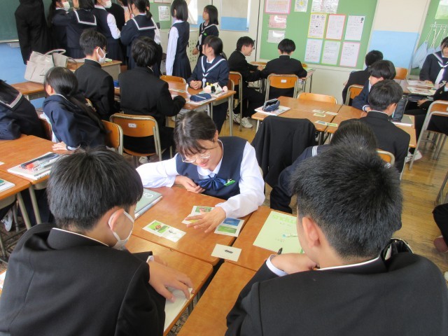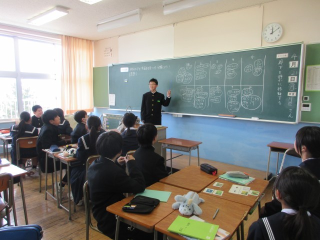 1年生の理科の授業の様子です。友達との話し合いの場面では、活発に意見を言ったり、しっかりと友達の意見を聞いている姿が印象的でした。