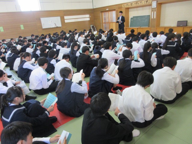 「決められているから守る」だけでなく、「なぜルールがあるのか、何のために守るのか」を考えてもらいたいと思い学年集会を行いました。
