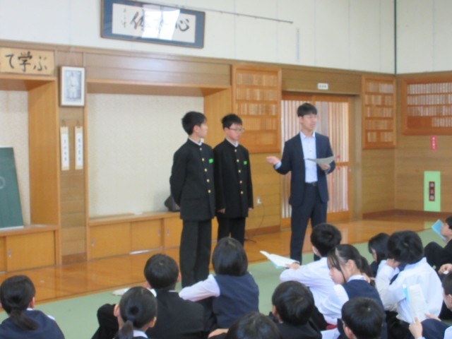 4限目に学年集会を行いました。入学して3週間、だいぶ学校生活にも慣れてきた様子です。