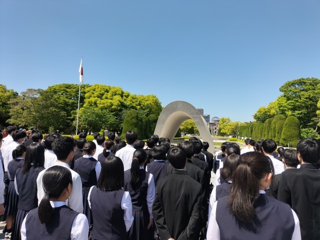5月7日(水) 修学旅行 平和セレモニー 公開日 2025/05/07 更新日 2025/05/07 3学年 平和記念碑の前で、平和セレモニーを行いました。石碑の向こうに見える原爆ドームに胸を打たれます。平和の誓いを心に刻んで、これから生きていきます! 1年生 2年生 3年生 学校行事 授業参観 PTA