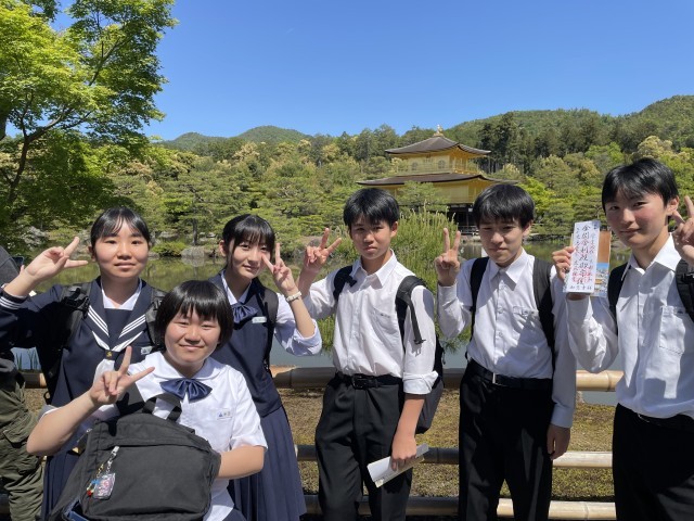 京都班別学習がスタートしました!金閣寺を見学しています。みんないい笑顔です!