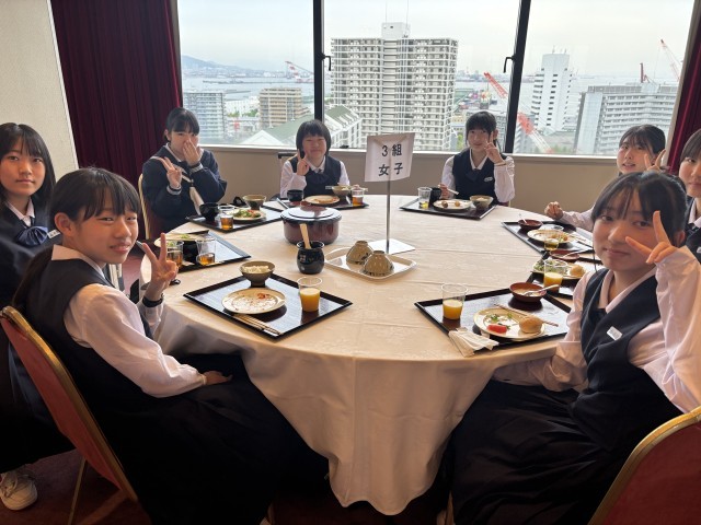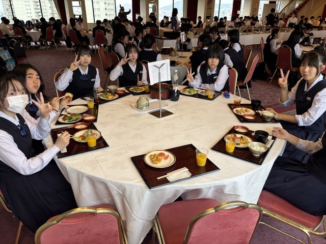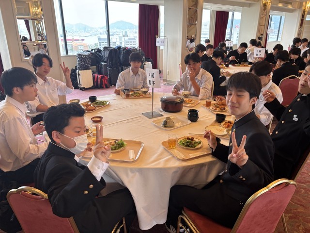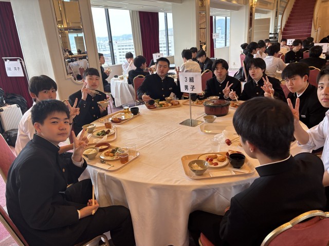 5月9日(金)修学旅行 最後の朝食です! 公開日 2025/05/09 更新日 2025/05/09 3学年 最終日の朝食会場の様子です。3日間天候に恵まれ、幸い雨も降らずにUSJを楽しめそうです!最終日は絆の学習!全員が楽しみ、安全に帰宅します! +3 1年生 2年生 3年生 学校行事 授業参観 PTA
