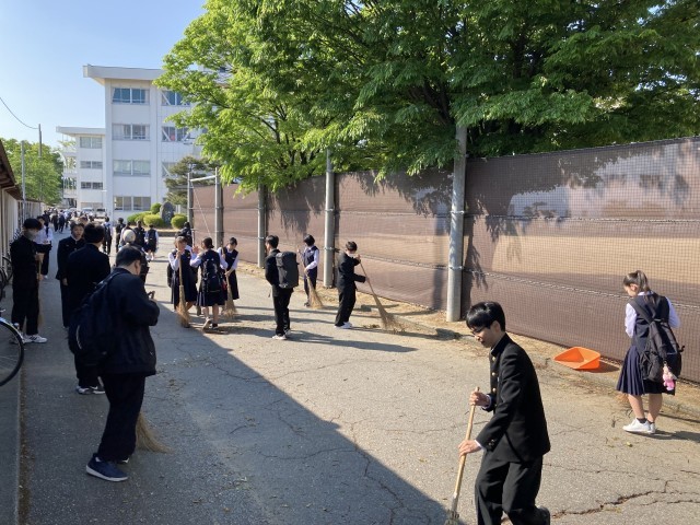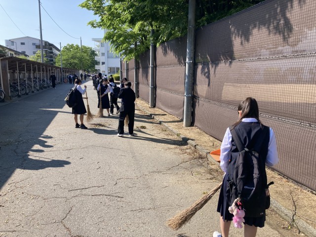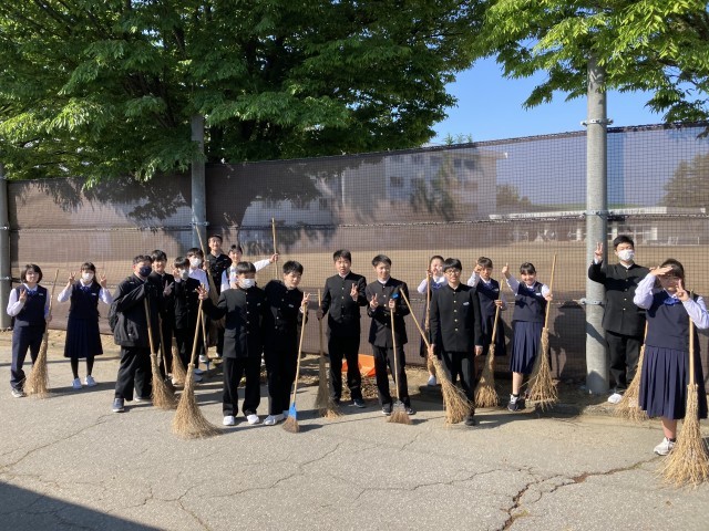 強風でたくさんの枝が折れ、小枝や木の葉が正門から玄関に続く道に落ちていました。来客を迎え、学校の第一印象を決める大切な道を生徒たちが朝からキレイに集めてくれました。修学旅行の結団式で校長先生から「アンテナを高く見学してきてください」という話を聞きました。学校内でも「こうなればもっとキレイで明るい学校になる」と気付いて行動できるようになればサイコーの最高学年になれると思うので、今日の行動力を大切にして更に成長していってください。今日もボランティア活動に参加できる3年生ってステキだなぁ。