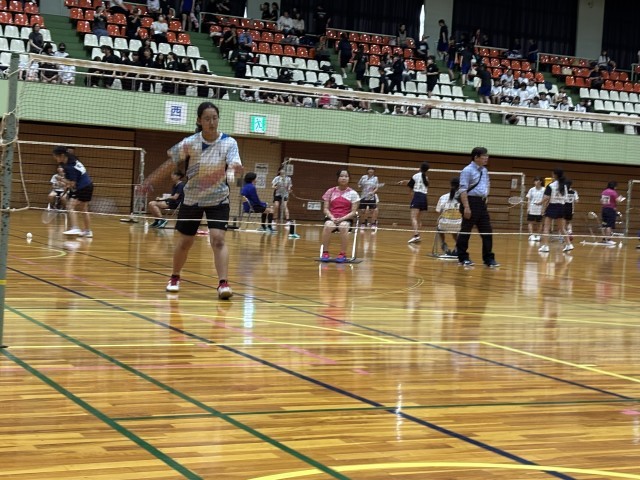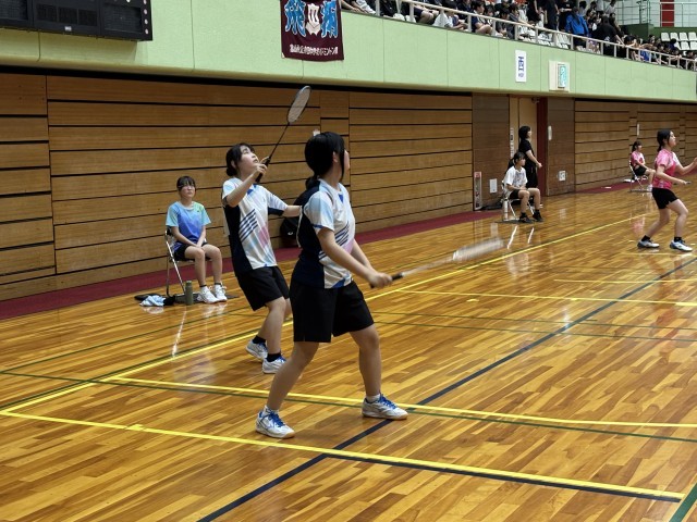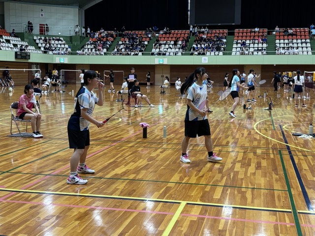 女子バドミントン個人戦は1回戦を行いました。日頃の練習の成果を発揮することができました。