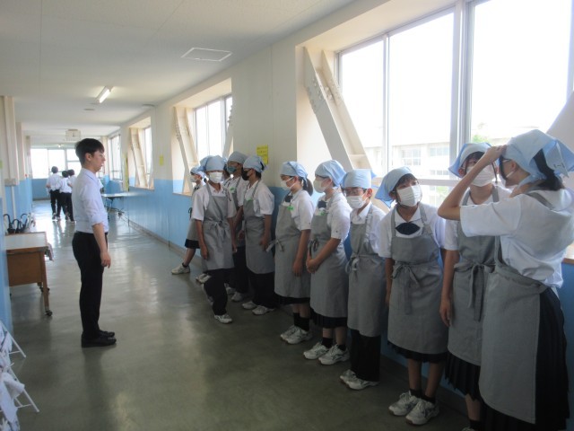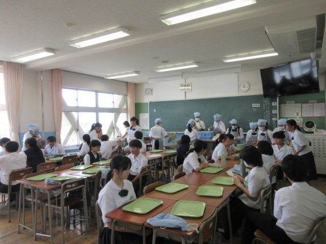 6月27日(金)1年生給食準備の様子