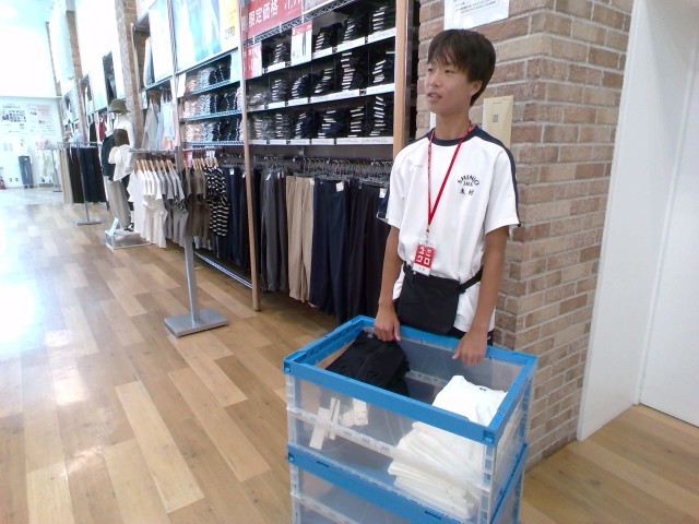 今から商品を実際にお客様が手に取られる陳列棚に並べるところです。