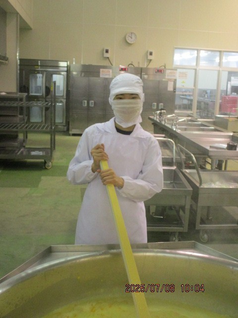 1枚目 2枚目 写真は富山北給食センターの様子です。今日の給食を一生懸命つくっている様子です。