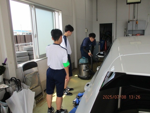7月8日 社会に学ぶ『14歳の挑戦』 公開日 2025/07/08 更新日 2025/07/08 2学年 株式会社ファーレン富山フォルクスワーゲン富山新庄店での活動の様子です。お客様の車を丁寧に掃除しています。 1年生 2年生 3年生 学校行事 授業参観 PTA