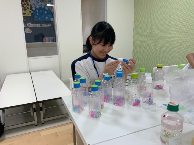 中央児童館では、プレゼント用のマラカスを作成していました。