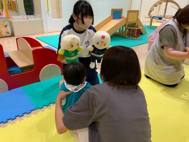 子育て支援センターでは、ぬいぐるみを持って、子どもたちを喜ばせていました。