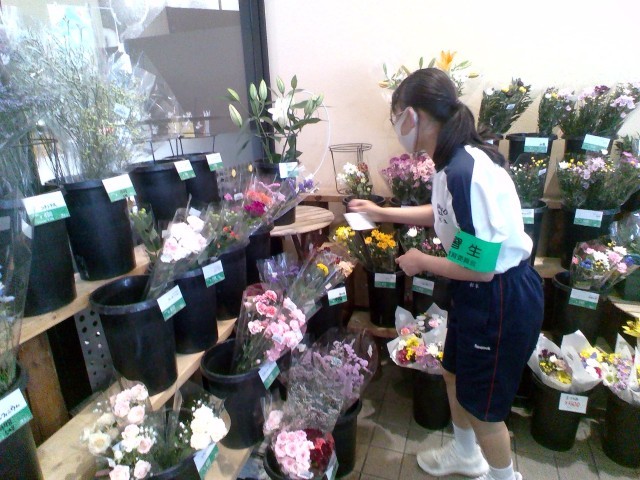 値段が表示されていなかった花に、自分で作らせていただいた値札を、実際に貼るところです。