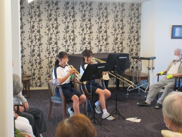 事業所のみなさんが知っているであろう曲を二人で選曲して演奏しました。