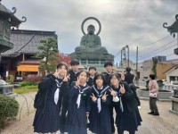 高岡大仏です。皆でおみくじ。おみくじは大吉の人が多いようです。手に持ってるカス...