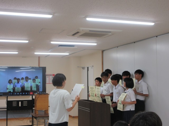 夏休み中に行われた大会で優秀な成績をおさめた生徒たちの受賞報告を行いました。