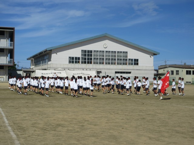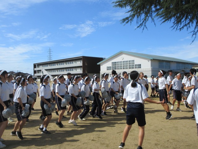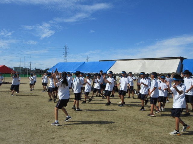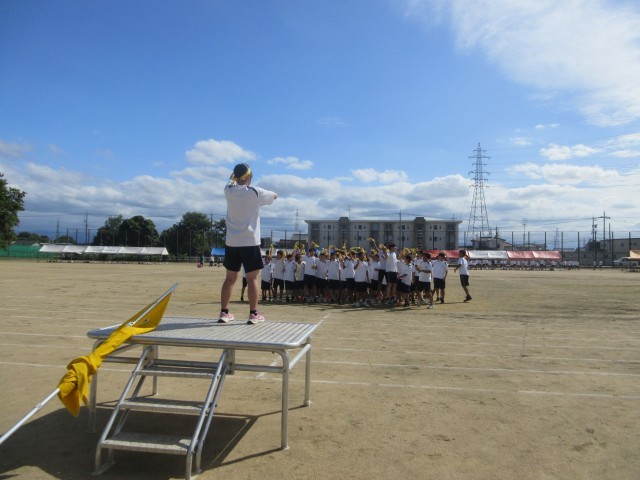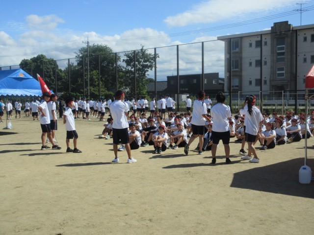 体育大会実行委員会の誘導で、各団ともグラウンドのセンターで団演技を練習する時間も設けられました。