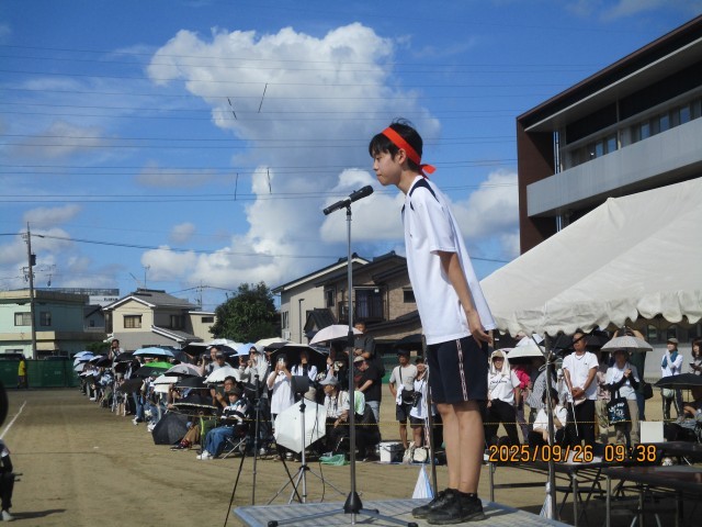 開会式が始まりました。今日まで毎日、表に裏に頑張っていた体育大会実行委員たちが取り仕切ります。