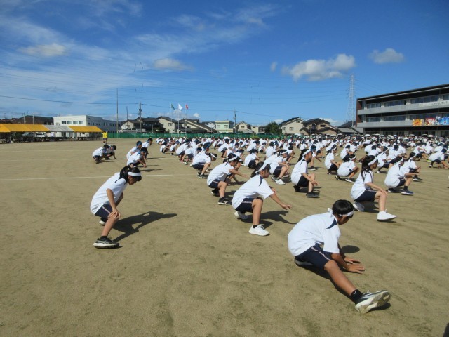 開会式の後には、全員で準備運動を行いました。音楽に合わせて体を細部まで動かしました。