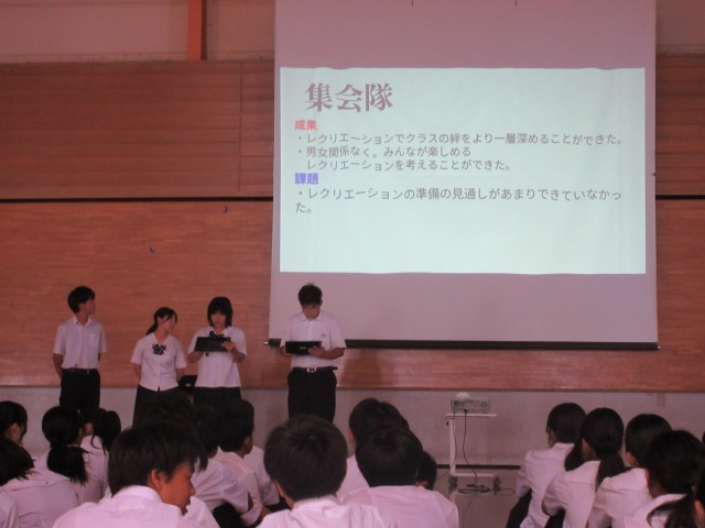前半は、前期生徒会による活動の振り返りを行いました。