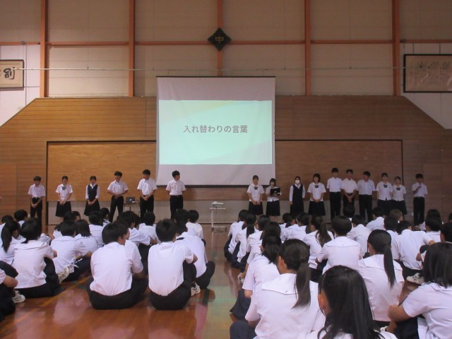 2年生は6限目に、前期後期学年生徒会入れ替わり集会を実施しました。