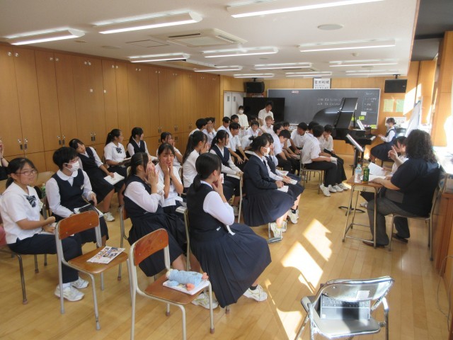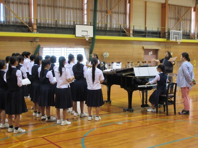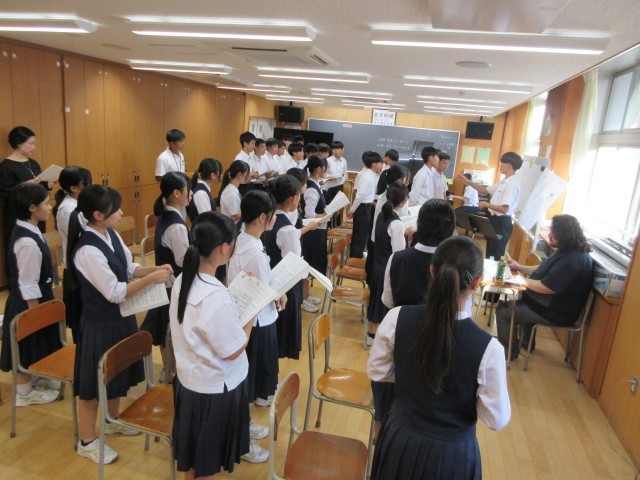 3年生 特別歌唱レッスン 公開日 2025/10/08 更新日 2025/10/07 3年 10月6日(月)実は、岩中コンサートの後、3年生の4つのクラスに歌唱指導をしていただきました。ありがとうございます!!!合唱コンクールで歌う曲について、たくさんアドバイスをいただきました。本番にむけて、ますます練習に力が入ります! +6