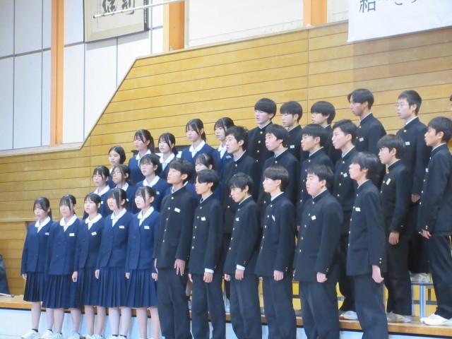 学年合唱「群青」は、3年生全員が心を一つに歌い上げました。
