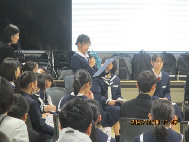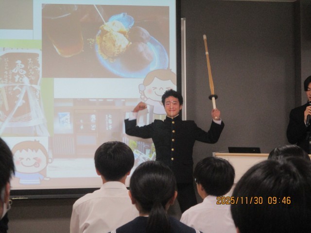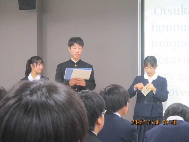 富山市のToyama Sakuraビルで、「私たちの校区の誇り」発表会が行われました。市内から10校が参加し、本校からも5名の3年生が参加しました。発表本番では、練習の成果を十分に発揮し、岩瀬の見どころをしっかりと紹介できました。