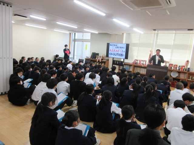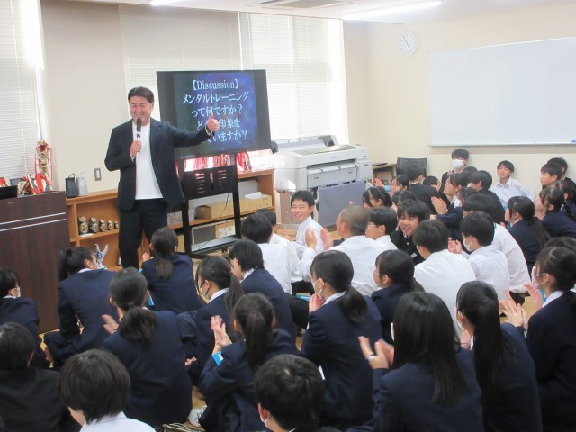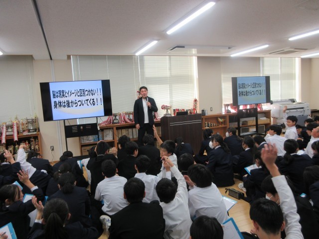 1年 心のスキルアップセミナー 公開日 2025/12/02 更新日 2025/12/02 1年 12/2(火)1学年 3・4限プロハンドボールチーム富山ドリームス監督の大房先生をお呼びして、「心のスキルアップセミナー」を実施しました。夢や目標を達成するために、まずは小さい目標から先に決めてみましょう!メンタル・気持ちを向上させる要素を、日々意識して過ごせたらいいですね。 +2