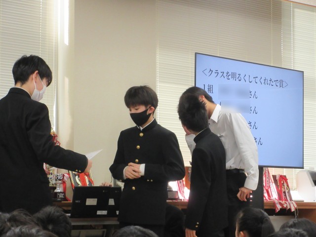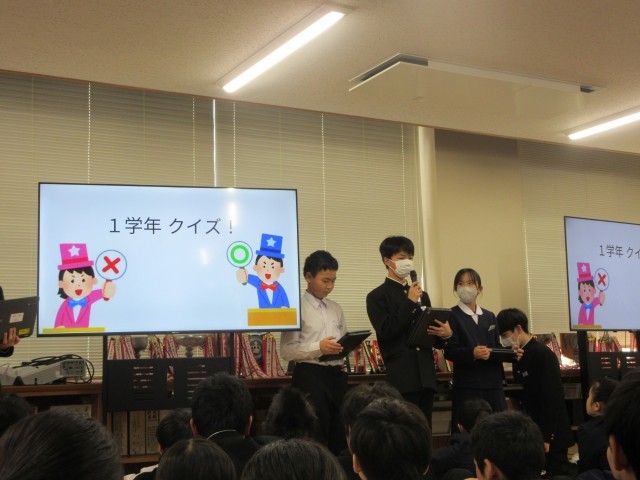 1年 学年集会 公開日 2025/12/23 更新日 2025/12/23 1年 12/23(火)3限 学年集会の様子です。学年生徒会企画「1学年クイズ」「表彰式」を行いました。16名の受賞者のみなさん、おめでとうございます☆ +4