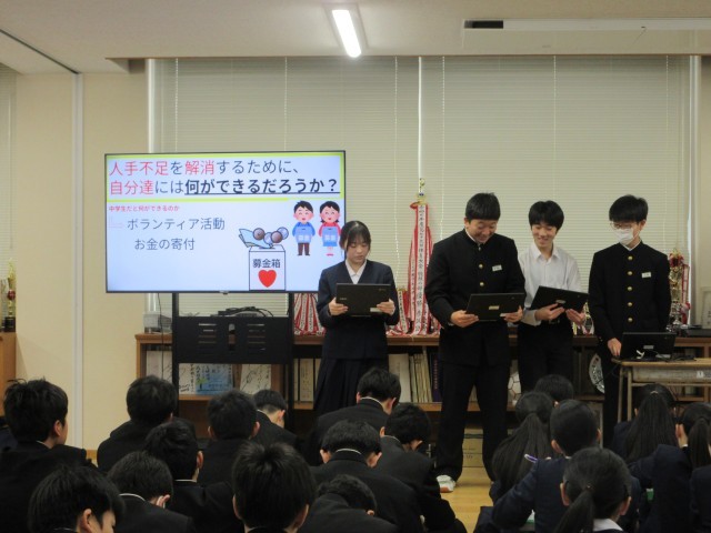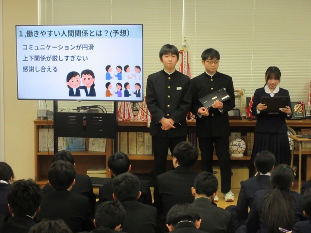 3限目に2学期の総合的な学習の時間に行った「働くこと」をテーマにした発表会が行われました。
