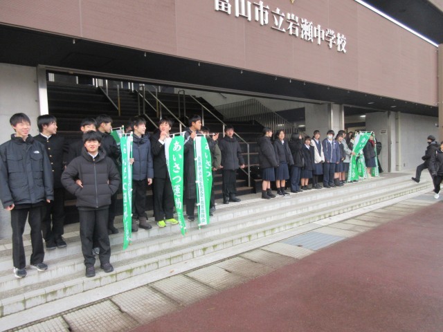 多くの生徒が参加し、爽やかな挨拶を交わしていました。