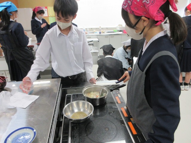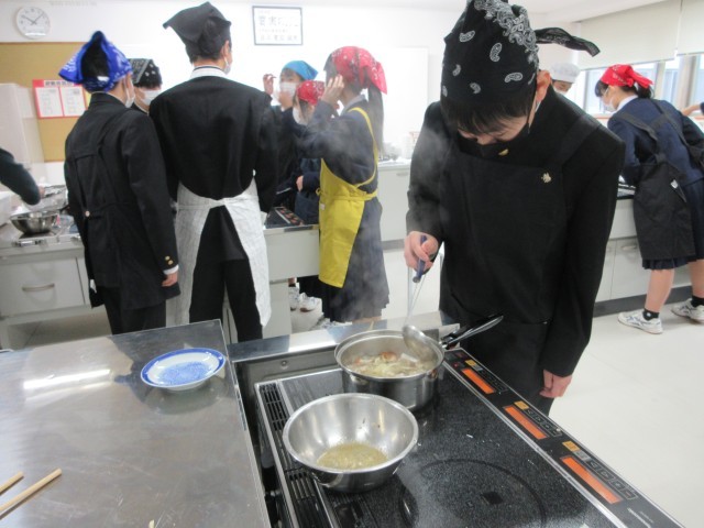 1年4組は本日調理実習を行いました。