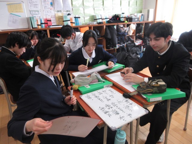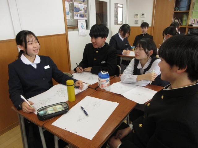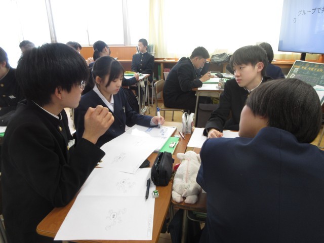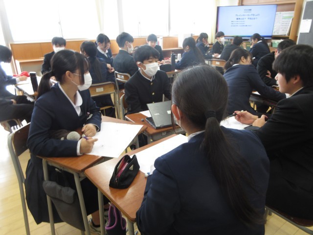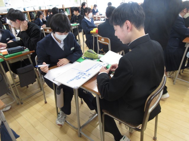 今日は、思考ツールを使って「平和」と「戦争」についてのブレインストーミングを行い、班で共有しました。
