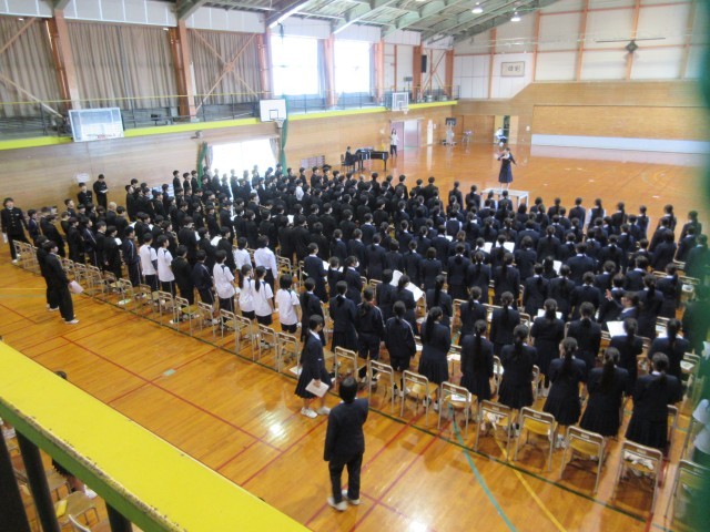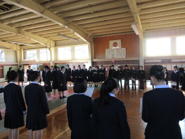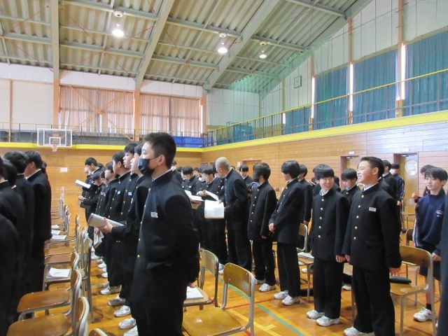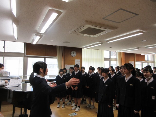 1・2年生は合同で卒業式に向けた合唱練習を行いました。