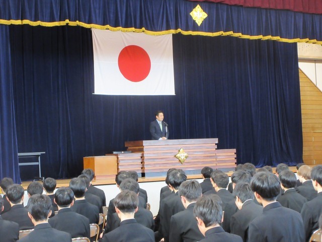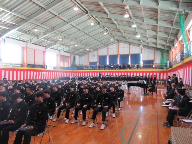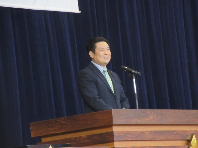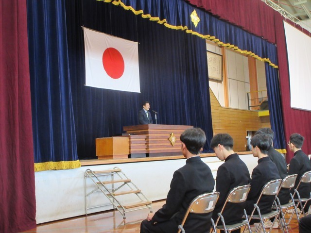 3月11日(水)9時から体育館で、育友会会長の大井陽司様をお迎えし、育友会卒業記念品授与式が行われました。