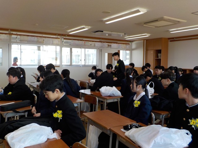 卒業生は、教室で朝学活。