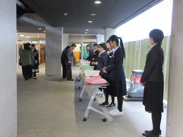 写真3 保護者の方の受付。受付担当は2年生の生徒たちです。