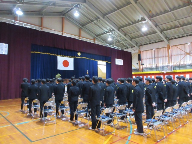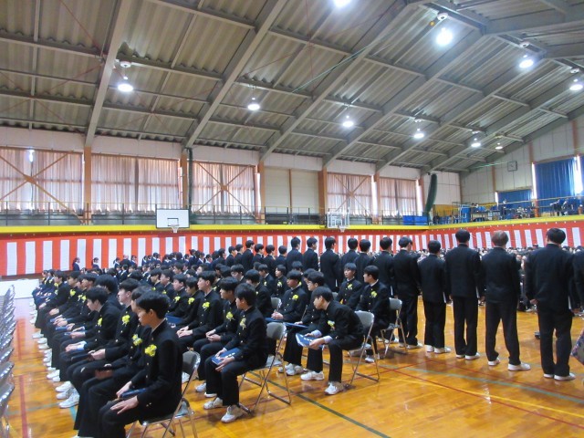 岩瀬中学校生徒が愛する校歌を盛大に歌い、卒業生退場です。