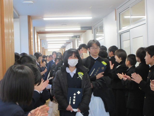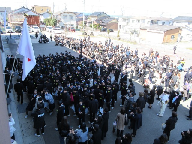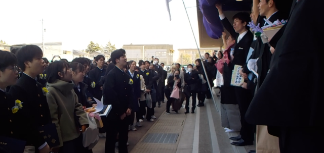 最後の最後には、卒業生と3学年教員とで校歌を歌いました。