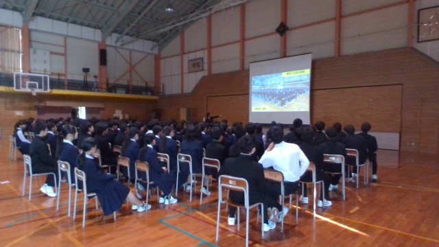 3年生に進級したばかりの生徒たちは、一人ひとりが自分のこととして捉え、真剣な眼差しで話を聞いている姿が印象的でした。これからの1年間、最高学年としての活躍を期待しています。