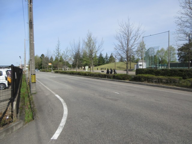 (写真は岩瀬スポーツ公園南側のT字路付近 交通量が多く横断しにくい)