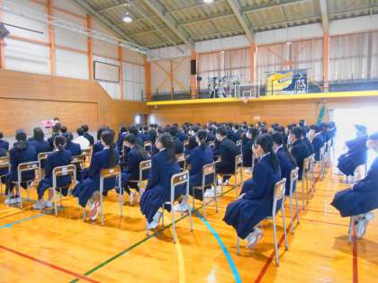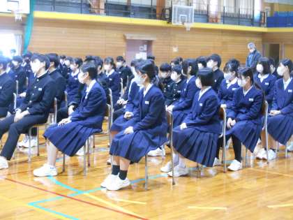 学年の先生から生活、学習、部活、生徒会についてお話があり、みんな真剣に聞いていました。