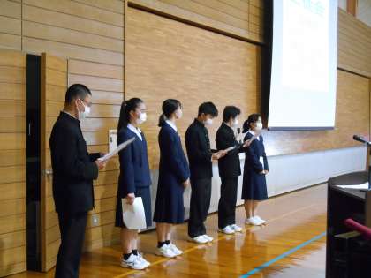 生徒会役員を中心に、学校行事や生活、委員会活動等の紹介を行いました。