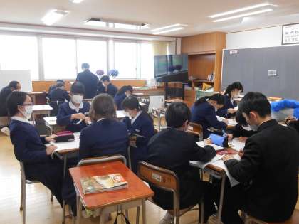 1組は国語の授業でした。登場人物や展開の設定の読み取りなど、とても集中して取り組んでいました。