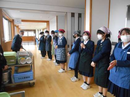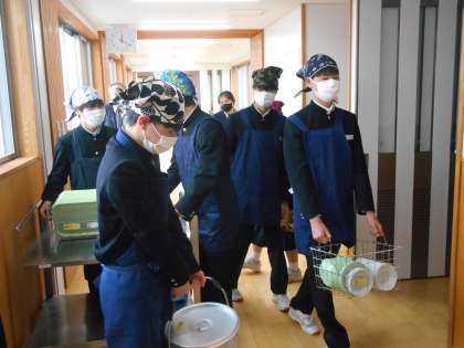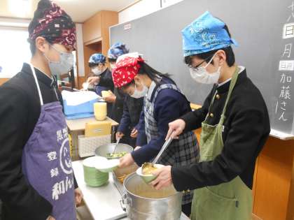 今日も給食当番は身支度が早く、慣れた手つきで配膳をしていました!