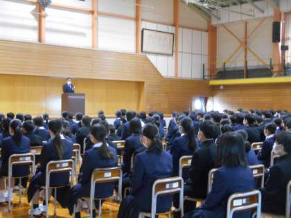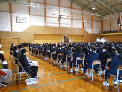 現在の整備された校舎と環境の中で、伝統と校風を存続させていくことが、私たち岩中生の使命であると改めて生徒たちが気づきました。校歌も大きな声で歌い上げました。